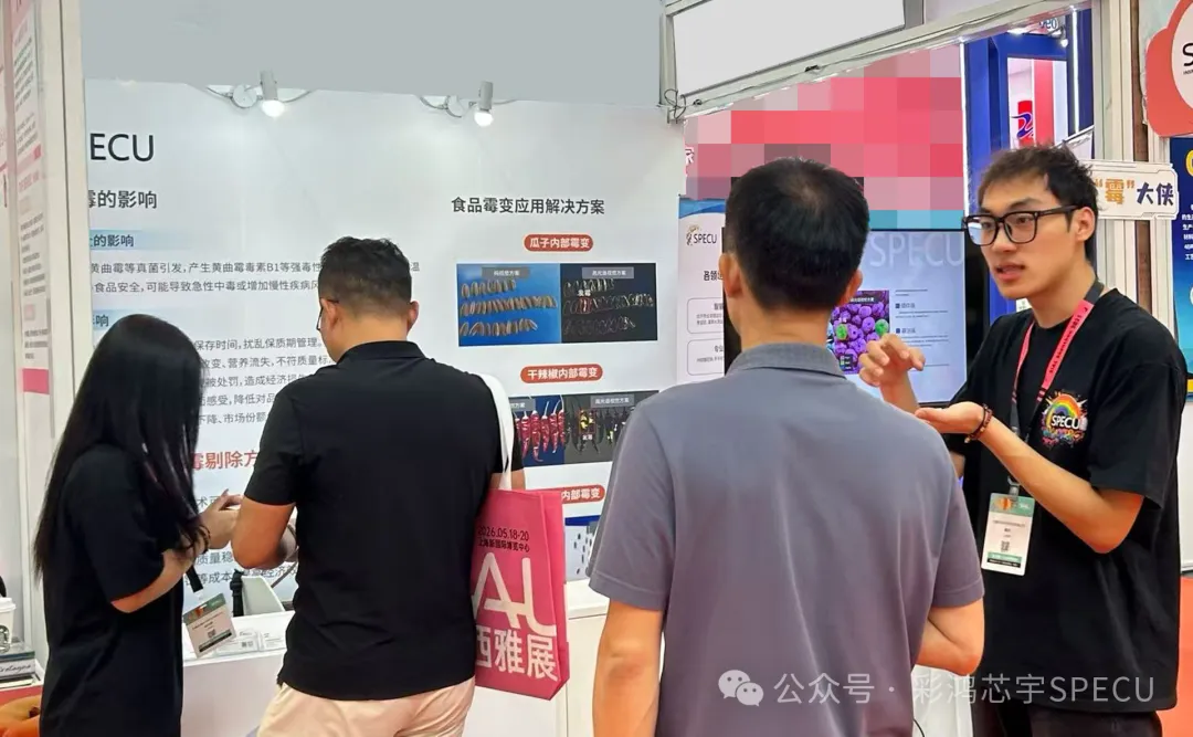 2025年9月SIAL 深圳西雅国际食品与饮料展上,无锡彩鸿芯宇科技有限公司以其创新的高光谱视觉检测方案,成为了展会的焦点之一。作为一家融合了中英联合科研力量的科技企业,彩鸿芯宇在为期三天的展会中,不仅展示了其在食品霉变检测领域的技术,更与来自全国各地食品加工企业代表深入交流,共同探讨食品行业霉变问题新方案。
