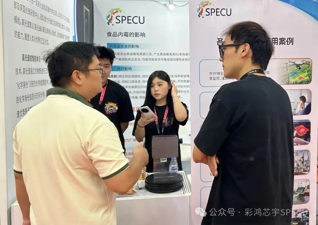 不少从事食品生产、加工的企业代表,围绕实际生产中遇到的霉变检测痛点与工作人员展开深入交流。有企业提出 “批量生产时如何保证检测速度与精度兼顾”、“不同品类食品(如谷物、果蔬)的检测参数是否需要调整” 等问题,我们结合过往服务案例,逐一给出专业解答,并现场模拟不同场景下的检测效果,让观众直观体验技术的适配性与可靠性。展位前持续的互动交流,不仅展现了彩鸿芯宇的技术实力,也让更多行业伙伴了解到高光谱检测技术在食品安全领域的应用价值。